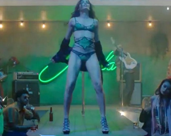Indian Actress and Model Freida Pinto has been spotted stripping in a Music Video of Bruno Mars. The Musical Single titled Gorilla which was released Online today shows Pinto writhing around a stripper pole and stripping down to her lingerie.