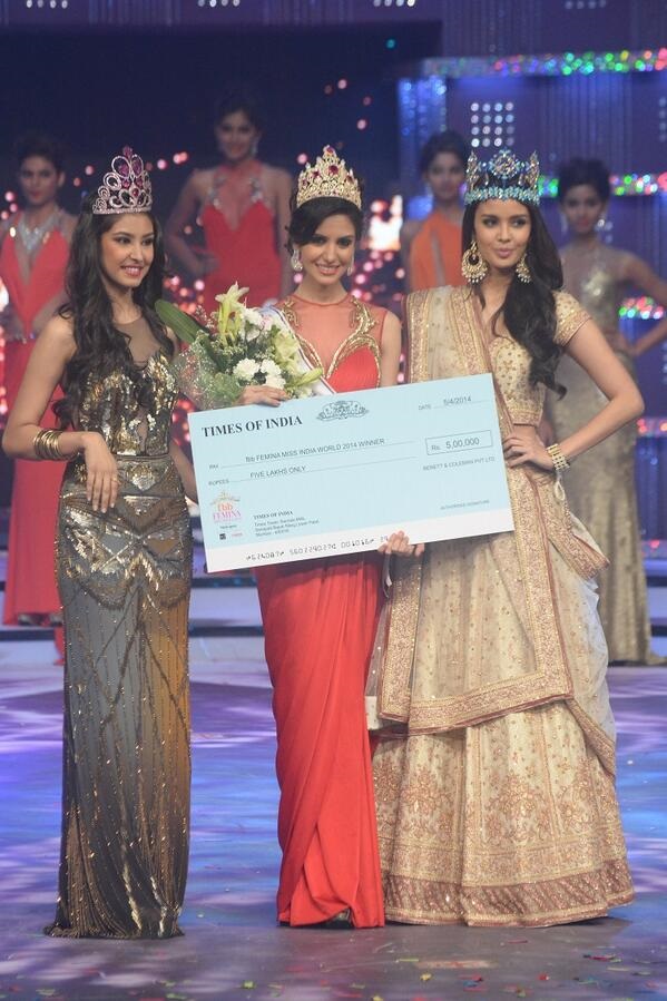 She was crowned at a grand Ceremony by outgoing Miss India Navneet Kaur Dhillon and incumbent Miss World Megan Young. Jhataleka Malhotra was the first runner up while Gail Nicole Da Silva was the second runner up. Lopamudra Raut and Nikhila Nandgopal were the other 2 contestants who made to Top 5.