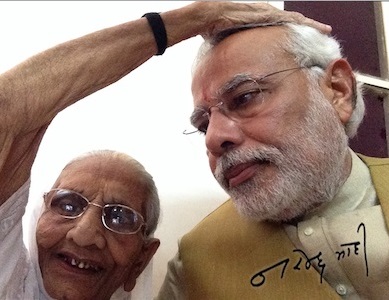 “Sought blessings from my mother,” Modi said in a tweet, after the Lok Sabha election results showed his party was headed for a comfortable majority.
