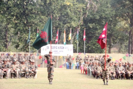 Kathmandu: The Eighth India-Nepal Battalion level Combined Military Training named Exercise Surya Kiran-VIII, commenced today at Integrated Army Training Centre, Saljhandi, Nepal, with an impressive opening ceremony that saw the unfurling of the National Flags of both countries.