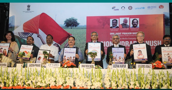 New Delhi: The multi-media campaign for Mission Indradhanush was launched here on Monday by J P Nadda, Minister for Health & Family Welfare. Mission Indradhanush depicting seven colours of the rainbow, aims to cover all those children by 2020 who are either unvaccinated or are partially vaccinated against seven vaccine preventable diseases which include diphtheria, whooping cough, tetanus, polio, tuberculosis, measles and hepatitis B.