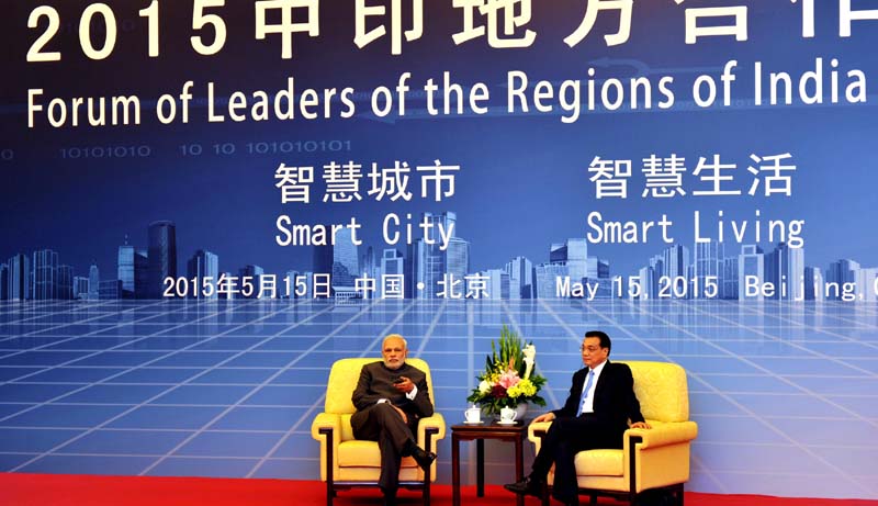 Narendra Modi with Chinese Premier Li Keqiang at launching ceremony of India-China Forum of State/Provincial Leaders, in Beijing