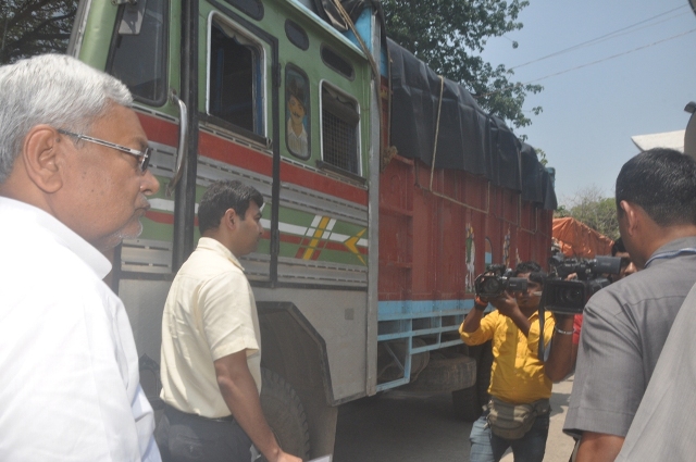 Later he went to see the progress of relief materials being sent to quake hit Nepal. He also flagged off relief material ladden trucks to various parts of Bihar and Nepal.