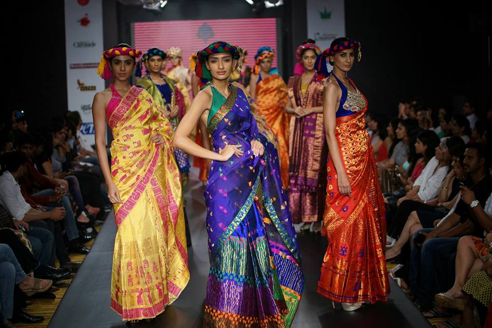 The Annual Mysore Fashion Week 2015 was held on September 4 – 6, 2015 at Hotel Country Inn & Suites by Carlson Mysore, where Sanjukta Dutta – a fashion designer from Guwahati, attired the contestants in Mekhla Chador – An Assamese Silk.